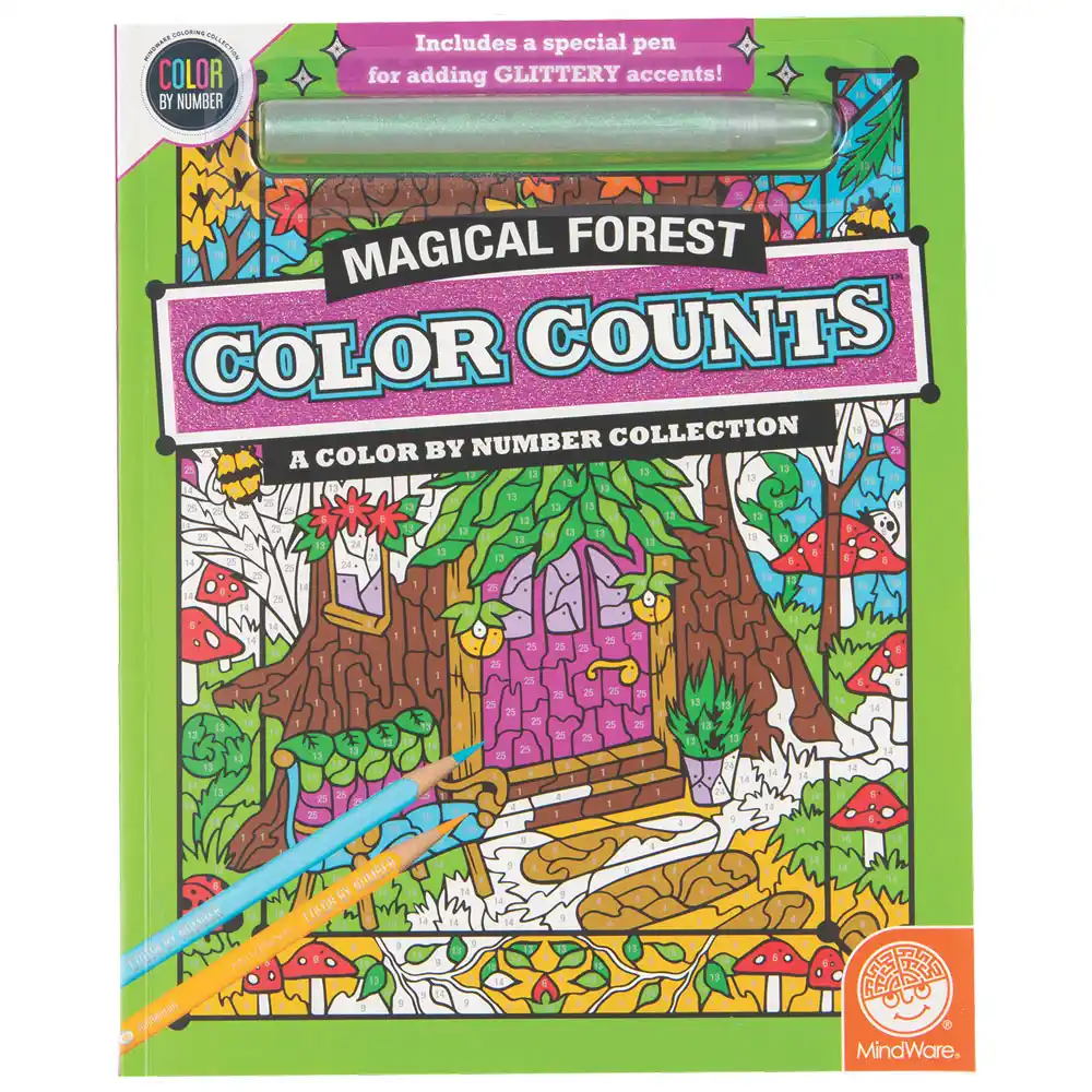 Images reveal themselves as the numbered designs are colored in, while unnumbered designs encourage you to create your own masterpieces. Accent your beautifully colored illustrations with the included glitter glue pen for an added touch! Each book has 22 perforated pages; 8 fold-out pages extend to 10" x 15". Ages 6+.
