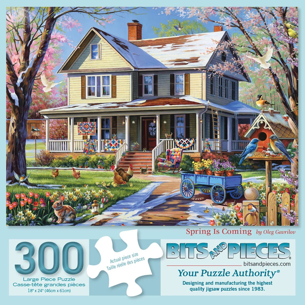 Porch rockers, puddles, and warming sunshine tell the story of winterâs end in this cozy countryside jigsaw puzzle. Oleg Gavrilov brings every detail to life, from the muddy boots on the steps to the early spring blooms just beginning to peek out. Itâs a gentle reminder that brighter days are just ahead.