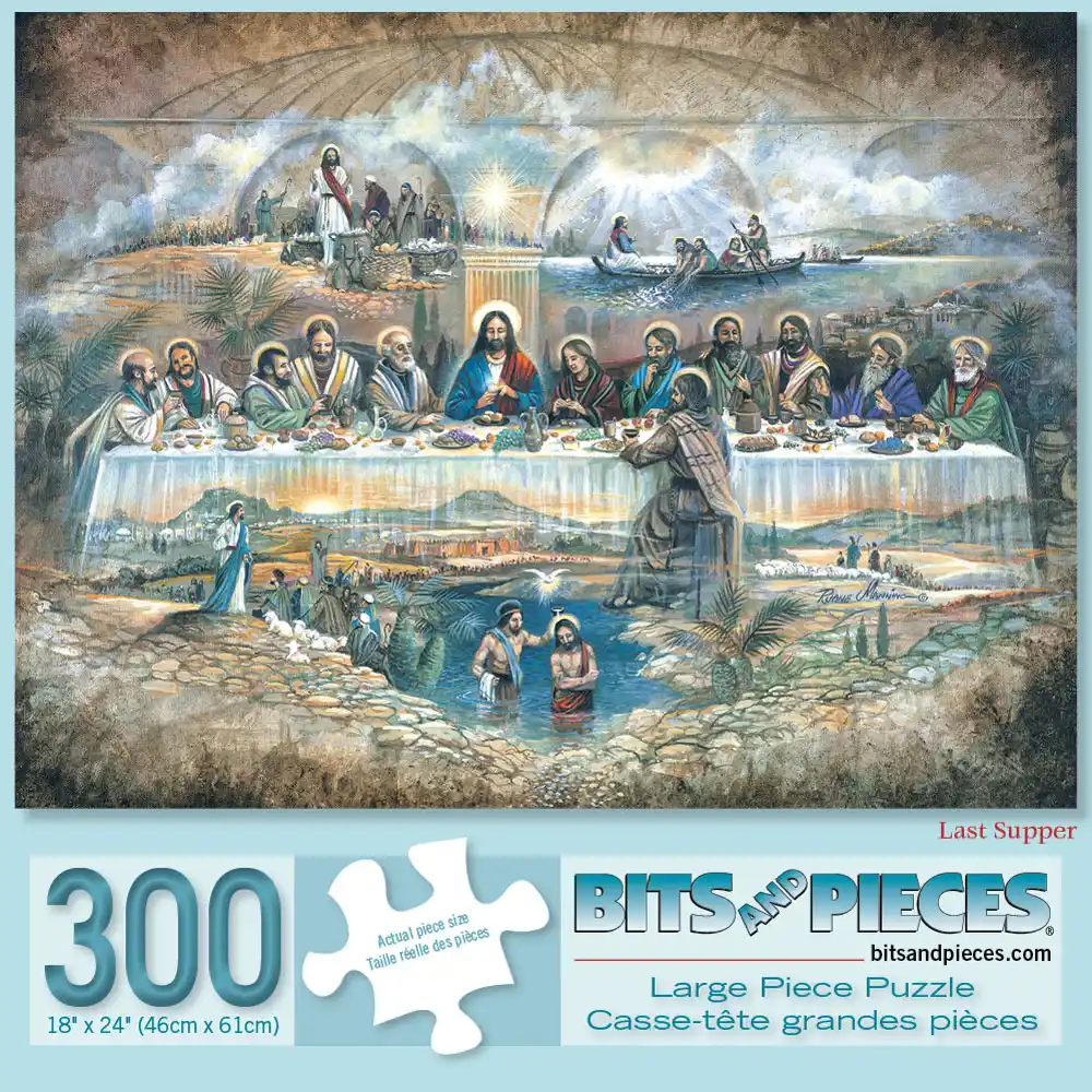 Celebrate faith and artistry with The Last Supper by Ruane Manning, a stunning depiction of Jesus and his disciples sharing a sacred moment. This intricate design weaves together powerful imagery of Christ’s ministry—from baptismal waters to his acts of compassion—set against a backdrop of soft, heavenly light. Each detail tells a story, drawing you into a journey of reflection and devotion, making this puzzle a meaningful and enriching experience.